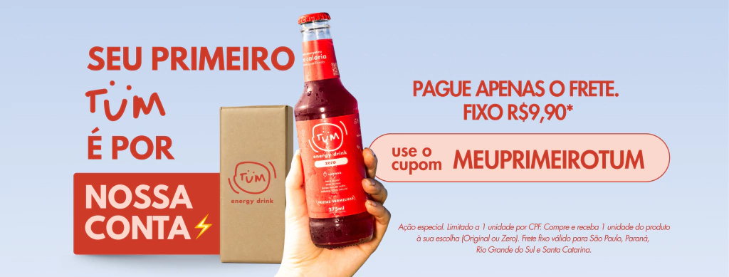 Use o cupom MEUPRIMEIROTUM e garanta seu Tüm pagando apenas o frete fixo de R$9,90*.